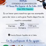 23 octubre, 2023Inauguración del vigésimo torneo de baloncesto pre-superior de la Ceiba 2023, copa Willy Céspedes. Nuestra comunidad cuenta con uno de los...
