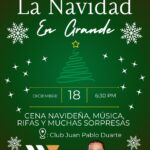 18 diciembre, 2023Hoy Lunes 18 de Diciembre a partir de las 6:30 de la tarde en la Club Juan Pablo Duarte de...