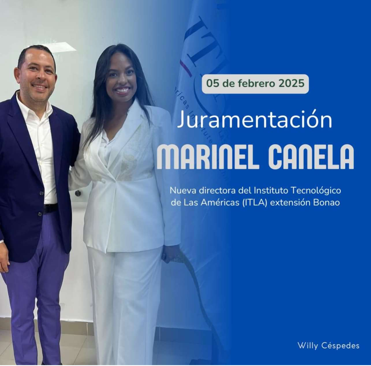 El director municipal de Jayaco, Willy Céspedes, expresó con orgullo sus más sinceras felicitaciones a Marinel Canela por su designación como directora del Instituto Tecnológico de Las Américas (ITLA) extensión Bonao.