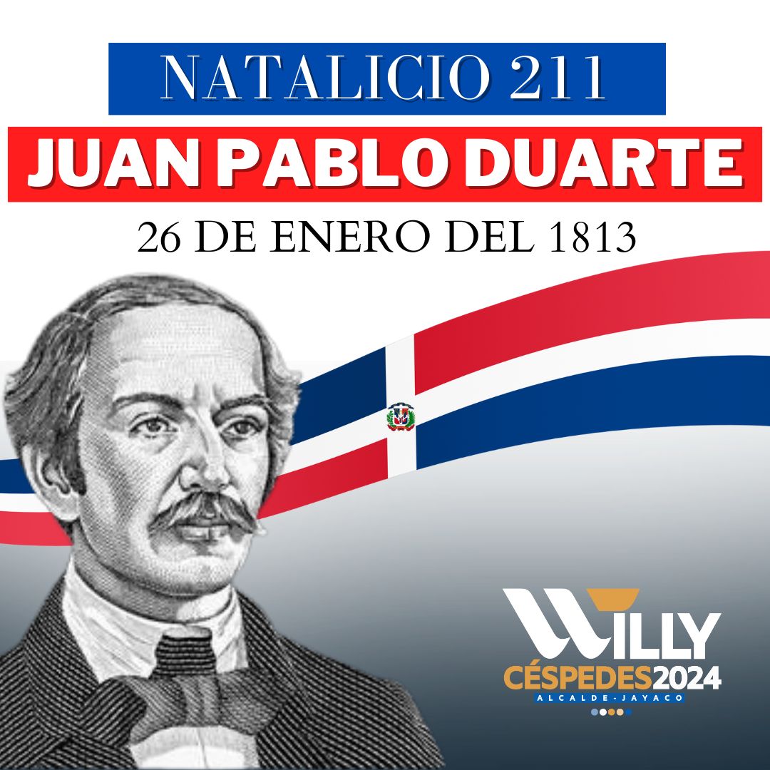 Hoy conmemoramos el natalicio de nuestro padre fundador, Juan Pablo Duarte, su legado de lucha y amor por su pueblo, es un mandato que todos debemos emular como Dominicanos