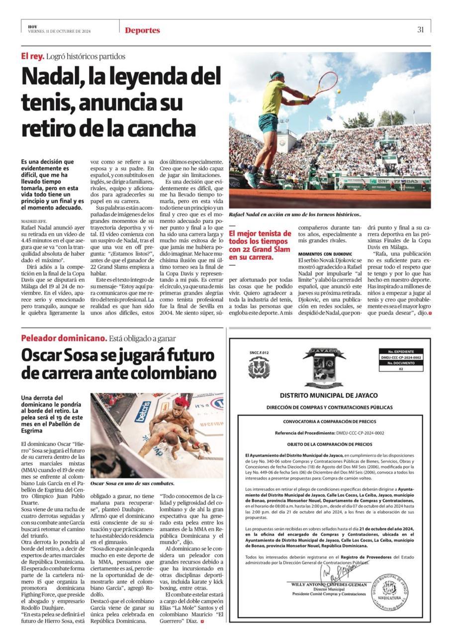 Publicación en el periodico Procedimiento de cmpra Ref. No. DMDJ-CCC-CP-2024-0002 Descargar228.21KB Fecha de subida: 11 octubre, 2024